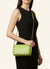 Un bolso bandolera pequeño idóneo para salir, llevar tus cosas imprescindibles y lucir un estilo elegante y poderoso, gracias a la combinación el color verde lima y las tachuelas plateadas.